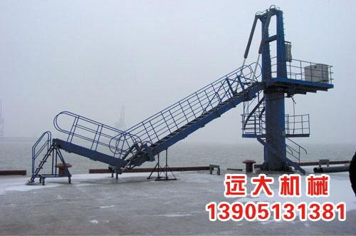 登船梯是現(xiàn)代各種大型碼頭在船舶停泊后,碼頭作業(yè)過程中,碼頭作業(yè)人員和船員安全順利上下船舶的專用設備。對于5萬噸級以上碼頭,油輪上自帶舷梯難以形成岸與船的安全通道,因此登船梯成了大型碼頭不可缺少的關鍵設備。